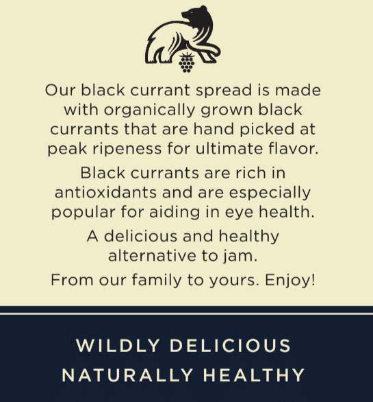 Black currants have traditionally been popular throughout Europe but are slowly catching on in the US. They are highly coveted for their distinctly delicious taste as well as their numerous health benefits. They contain twice the amount of potassium found in bananas, 5 times the vitamin C in oranges, and over twice the antioxidants in blueberries. Our black currant fruit spread is made with organically grown and hand harvested berries that are brimming with zesty goodness. Our fruit spreads are made by hand in small batches to help capture the pure and rustic flavors of the fruit. These spreads make unique and thoughtful gifts for friends and loved ones or a delicious treat for yourself. You can spread some on your toast for a gourmet breakfast, add a dollop to your ice cream for extra flavor or even pop a little on top of your baked brie. There is no wrong way to enjoy this versatile spread. Shipped straight to your door. Enjoy!