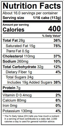 Servings: 64oz cake- Serves 16 slices