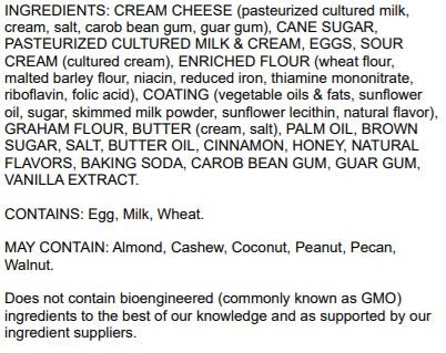 A true New York style cheesecake handmade in small batches with all local ingredients. Were talking real eggs, real milk and just a touch of pure cane sugar. These cheesecakes are exceptionally rich and creamy covered with a layer of sweetened sour cream that sits atop a crumble graham cracker crust making for a delightful dessert. It is tender and smooth and will melt in your month. Just thaw and serve by itself or with any one of our delicious, thawed berries as a topping.