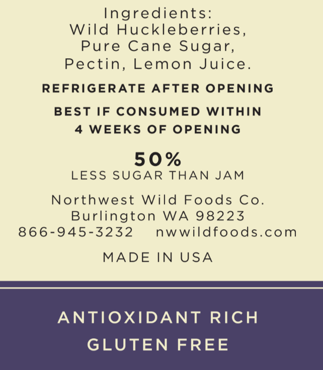 Ingredients: Truly Wild Blue Huckleberries, Pure Cane Sugar, Fruit Pectin, Lemon Juice