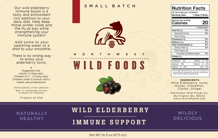 Our wild elderberry immunity health tonic is made with truly wild elderberries (sambucus nigra) that have been hand-picked at peak ripeness for optimal flavor and nutritional value. After harvest, these powerhouse berries are carefully made into small batch tonics by hand to help ensure the greatest flavor and maximum health benefits. Although widely known as a syrup, this tasty treat is actually closer to a health tonic. There are many ways to enjoy this wonderful healthy immune boosting tonic. Enjoy straight from the bottle or just add a shot to your sparkling water or smoothie, mix into yogurt, either way its a must have to help fight the winter blues! Wild elderberries are extremely rich in vitamin C which is great for promoting immune health and helping keep the common cold and flu at bay as well as assisting in reducing their symptoms. For centuries elderberries have been used in folk medicine from Europe and North America, to Western Asia and North Africa. As recently as 1995 elderberry juice was successfully used to treat a flu epidemic in Panama.