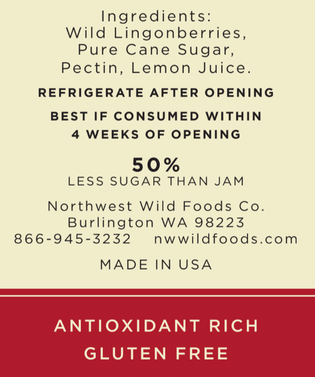 Ingredients: Truly Wild Lingonberries, Pure Cane Sugar, Fruit Pectin, Lemon Juice